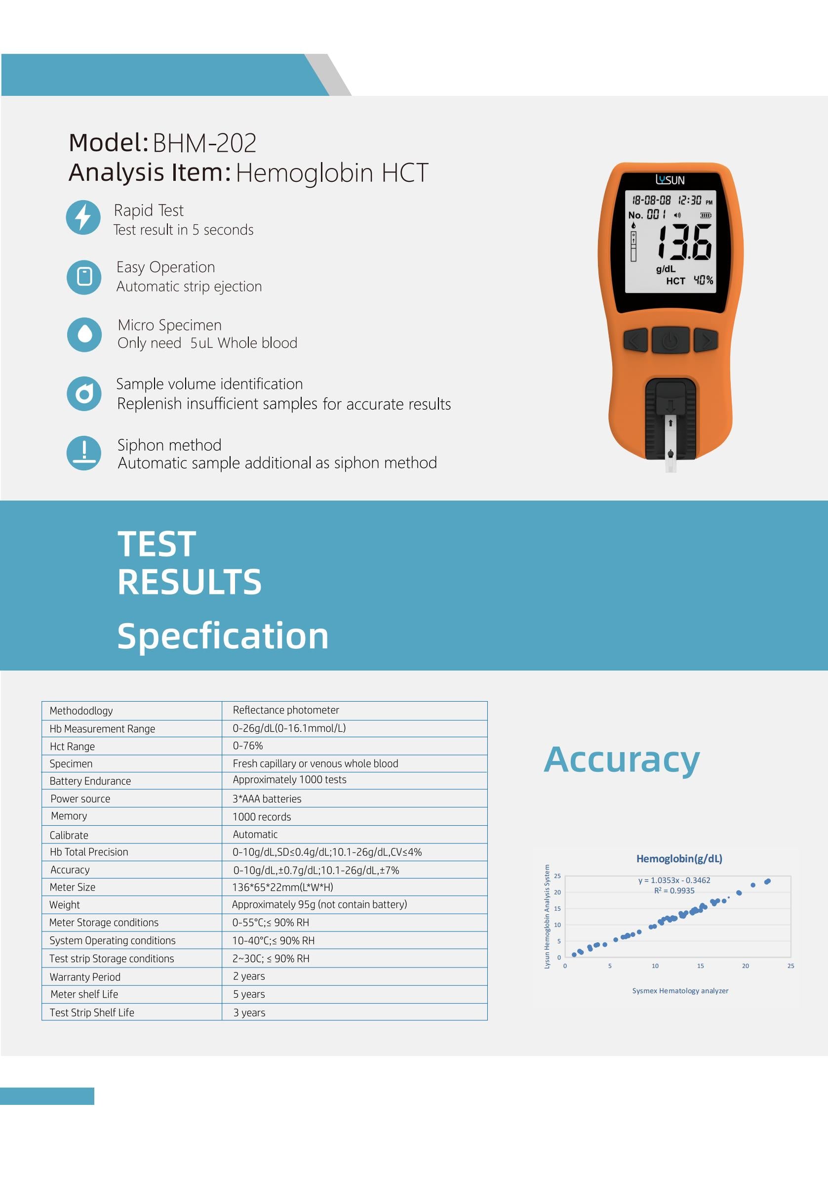 Lysun POCT Siphon Method Hemoglobin Analyser Fast Blood Testing Hemoglobin Meter BHM-202(No Batteries)